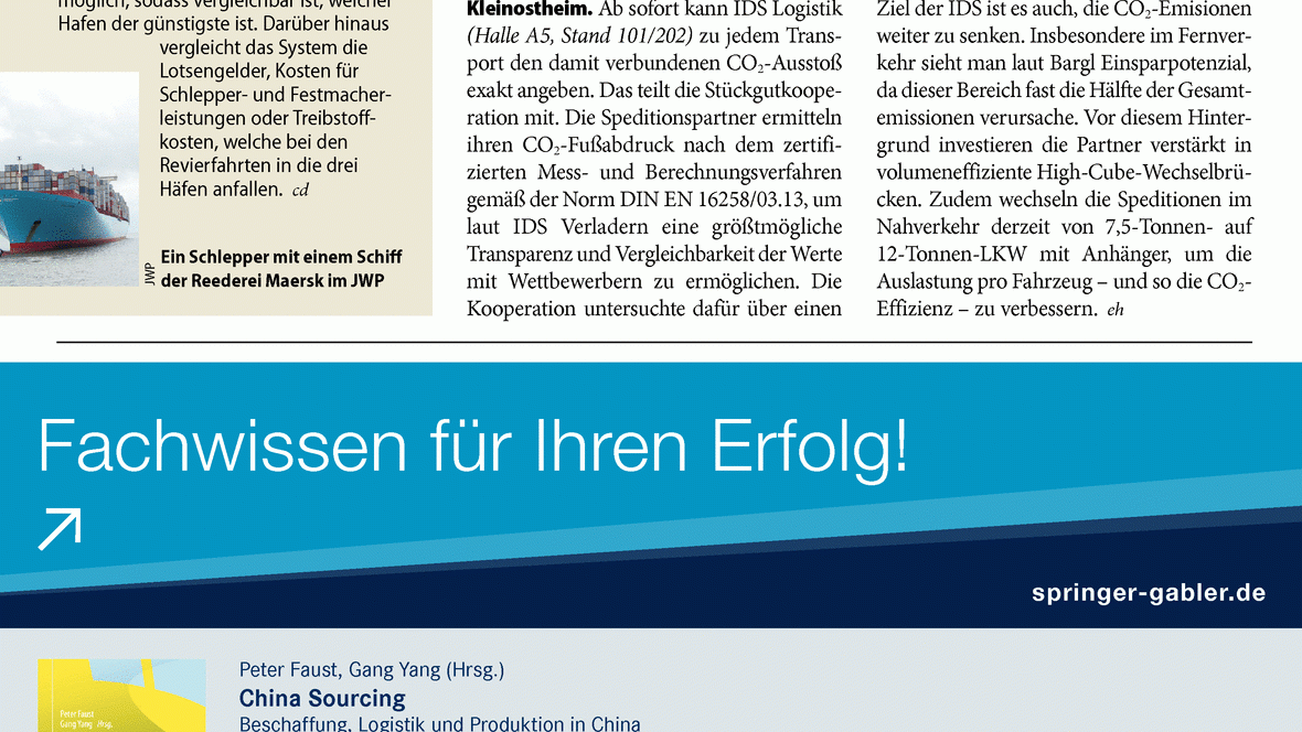 Nachrichten Die Partner des Stückgutverbundes IDS Logistik können ihren CO2-Fußabdruck nach der Norm Din En 16258/03.13 ermitteln und ausweisen. Kleinostheim. Ab sofort kann IDS Logistik (Halle A5, ...