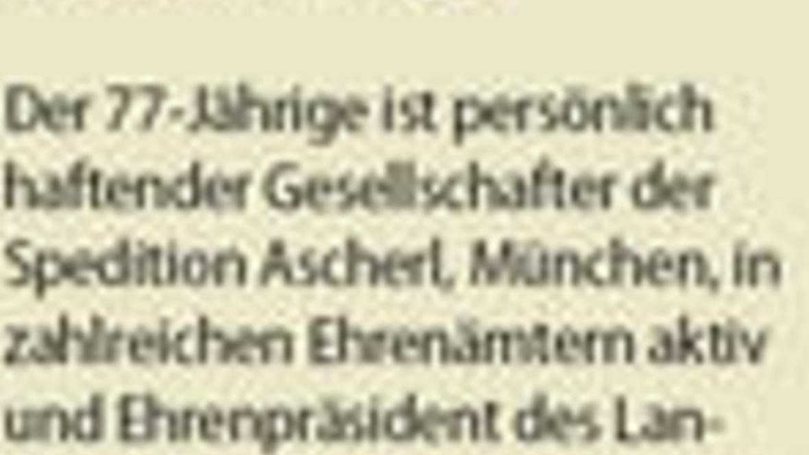 Erich Dahringer Der 77-Jährige ist persönlich haftender Gesellschafter der Spedition Ascherl, München, in zahlreichen Ehrenämtern aktiv und Ehrenpräsident des Landesverbandes der Bayerischen Spediteur...