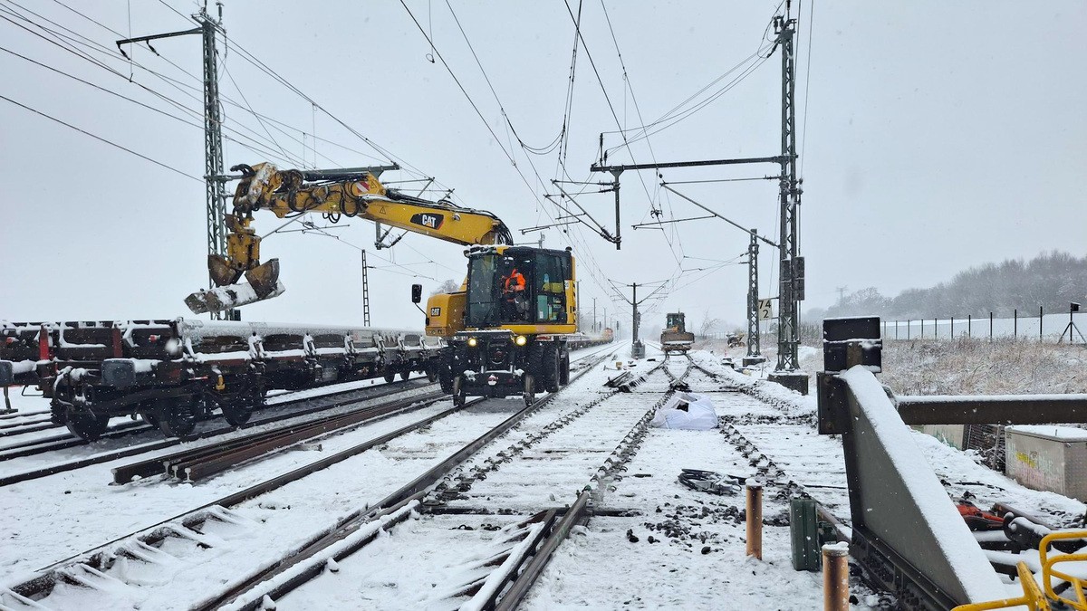 Die Arbeiten sind laut der DB zufolge seit sechs Wochen in Verzug, weil Frost und Schnee Kabeltiefbauarbeiten nahezu unmöglich machen