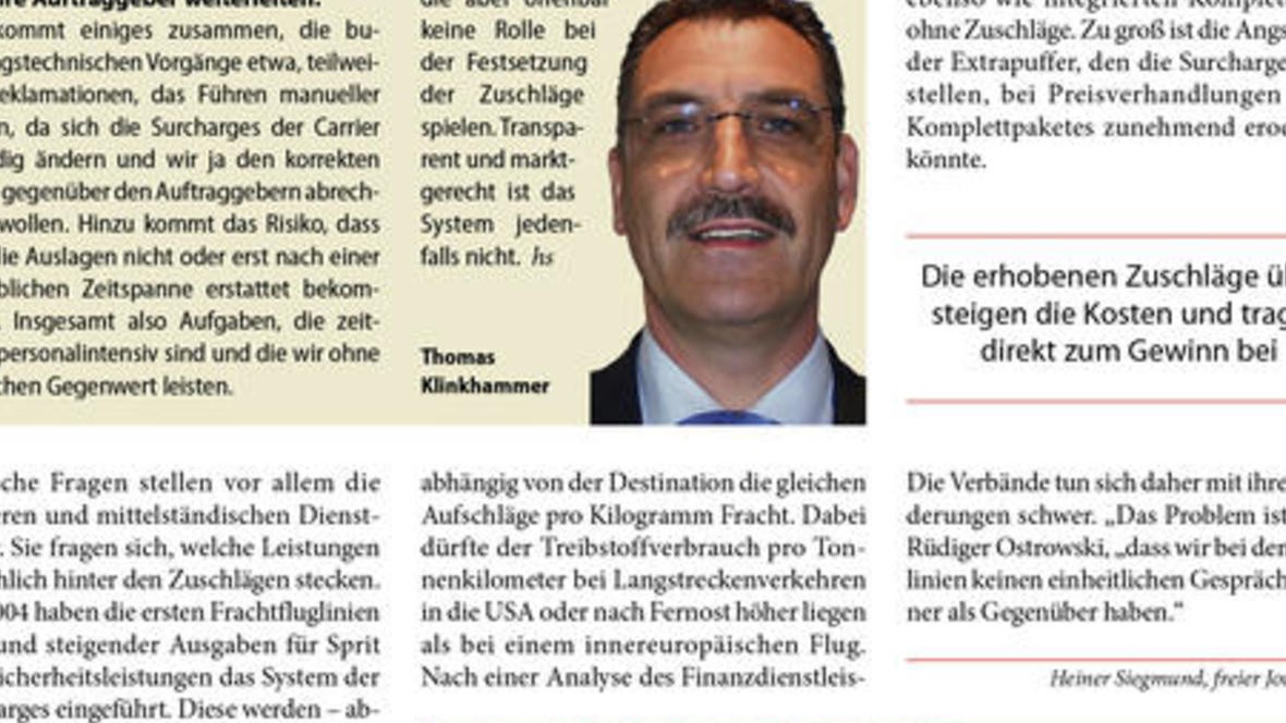 Im Zuge erodierender Frachtraten geben sich Airlines erfinderisch bei Zuschlägen. Spediteure fordern für diesen Extraposten eine Inkasso-gebühr von den Carriern Für 10 Eurocent pro Kilogramm geht h...