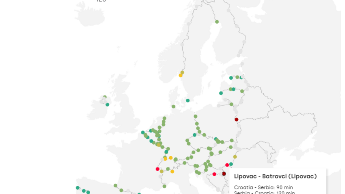 Die Transportmanagement-Plattform Transporeon hat eine Grenzstatus-Karte eingeführt, die Lkw-Wartezeiten an europäischen Grenzen darstellt.