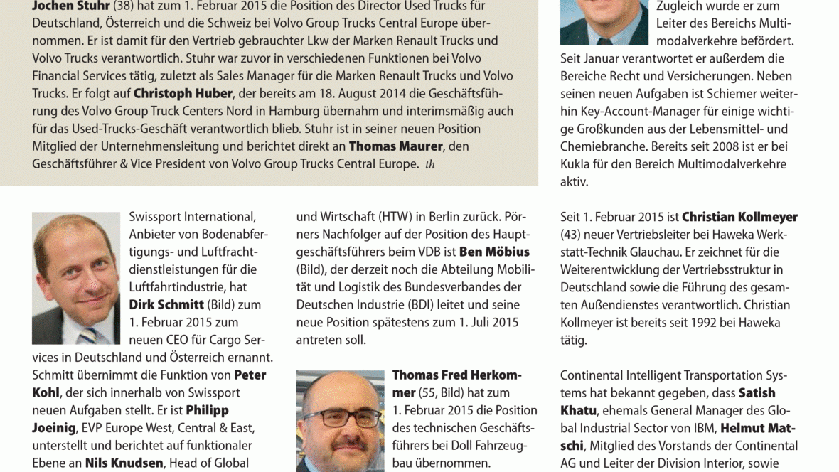 Jochen Stuhr (38) hat zum 1. Februar 2015 die Position des Director Used Trucks für Deutschland, Österreich und die Schweiz bei Volvo Group Trucks Central Europe übernommen. Er ist damit für den Vertr...