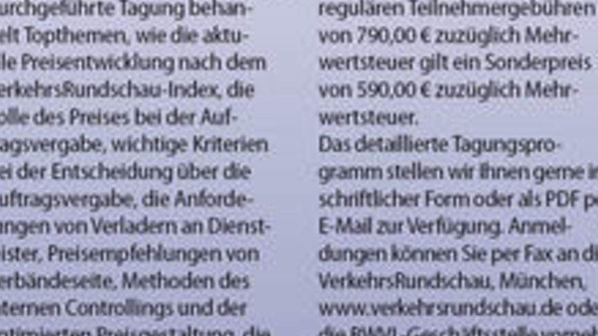 Auf den Preis kommt es an! Am 16. Juni 2009 findet in Frankfurt am Main die VerkehrsRundschau-Konferenz „Auf den Preis kommt es an! – Optimale Preisgestaltung bei Transportdienstleistungen“ statt. Di...
