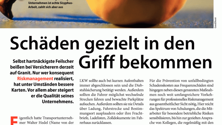 Stetige Schadensbegrenzung in Unternehmen ist echte Sisyphus-Arbeit, zahlt sich aber aus Riskmanagement Schritt für Schritt umgesetzt Selbst hartnäckigste Feilscher beißen bei Versicherern derzeit ...