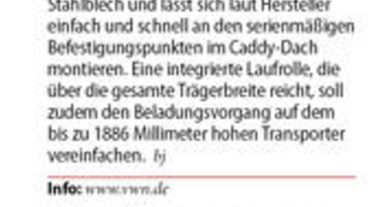 Wem der Platz im VW Caddy und sogar im längeren „Maxi“ nicht ausreicht, dem bieten die Niedersachsen die Möglichkeit, sperrige Brocken aufs Dach zu verbannen. Der über das VW-Zubehör lieferbare Dac...