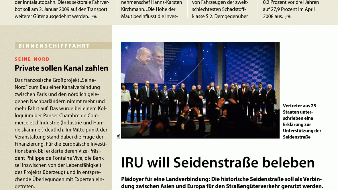 Binnenschifffahrt IRU will Seidenstraße beleben Plädoyer für eine Landverbindung: Die historische Seidenstraße soll als Verbindung zwischen Asien und Europa für den Straßengüterverkehr genutzt wer...
