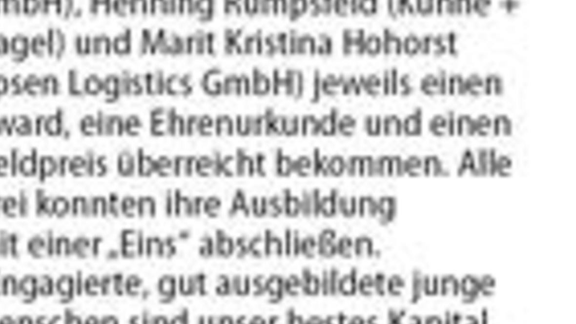 Junge Kaufleute für Spedition und Logistik ausgezeichnet Der Verein Bremer Spediteure hat zum dritten Mal in Folge die erfolgreichsten Auszubildenden des letzten Jahres geehrt. Aus den Händen des Mae...