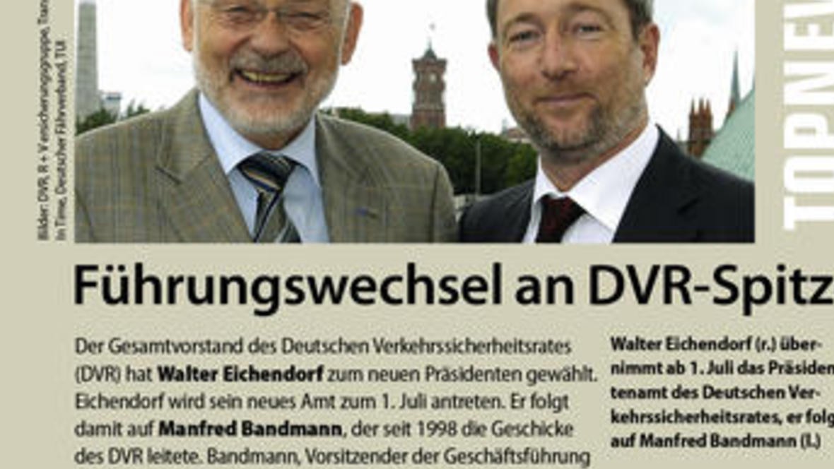 Führungswechsel an DVR-Spitze Der Gesamtvorstand des Deutschen Verkehrssicherheitsrates (DVR) hat Walter Eichendorf zum neuen Präsidenten gewählt. Eichendorf wird sein neues Amt zum 1. Juli antreten....