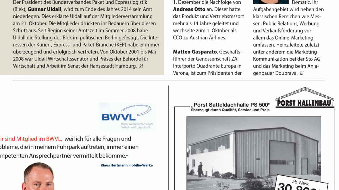 Der Präsident des Bundesverbandes Paket und Expresslogistik (Biek), Gunnar Uldall, wird zum Ende des Jahres 2014 sein Amt niederlegen. Dies erklärte Uldall auf der Mitgliederversammlung am 21. Oktober...