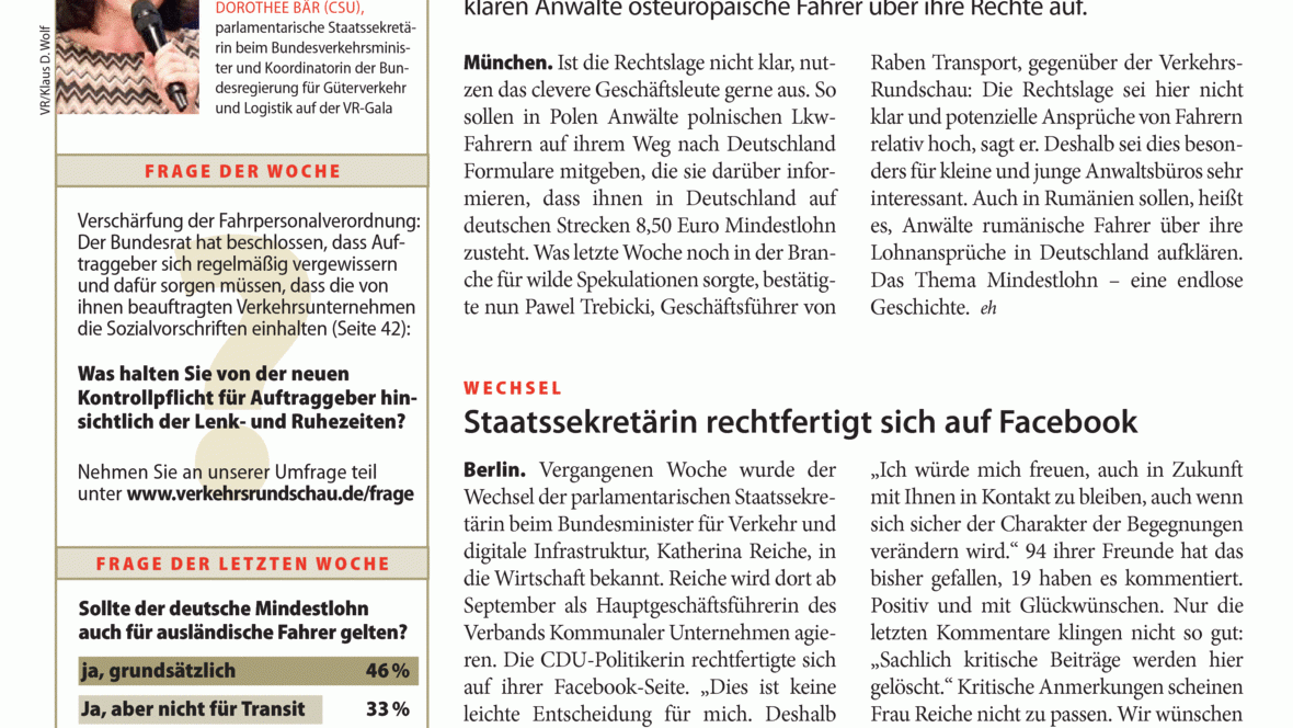 Der Staat nimmt die Auftraggeber von Logistikaufgaben stärker in die Verantwortung. Welche Änderungen sich durch Mindestlohn und Fahrpersonalgesetz ergeben, erläutert am 22. April das VR-Seminar "Verl...