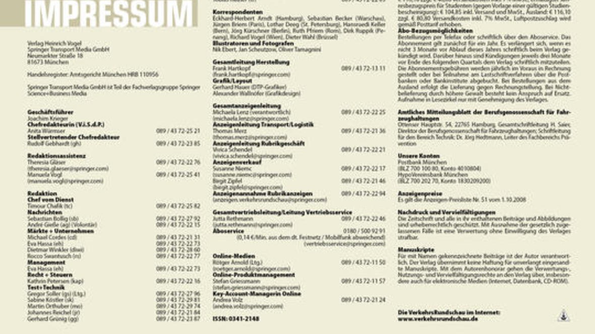 Springer Transport Media GmbH Neumarkter Straße 18 81673 München Handelsregister: Amtsgericht München HRB 110956 Springer Transport Media GmbH ist Teil der Fachverlagsgruppe Springer Science+Busi...