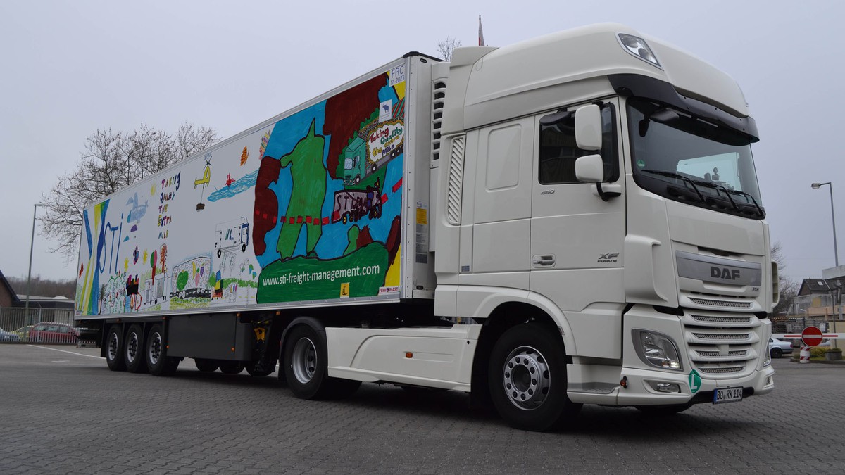 Duisburg. Lkw-Auflieger gelten selten als Schmuckstücke oder gar Kunstwerke - dies hat sich offenbar auch das Duisburger Logistikunternehmen STI Freight Management gedacht. „Wir haben einen ganz speziellen Trailer mit Kinderbildern gestalten lassen“, so Kai Schüttke, Geschäftsführer von STI. An dem kunterbunten Design werkelten demnach 23 Kinder, Enkel und Nichten von STI-Mitarbeitern. Die Kleinen wählten dabei Motive passend zu den Themen Logistik, zu den vier Jahreszeiten oder zum Firmenmotto „Taking Quality the Extra Mile“.